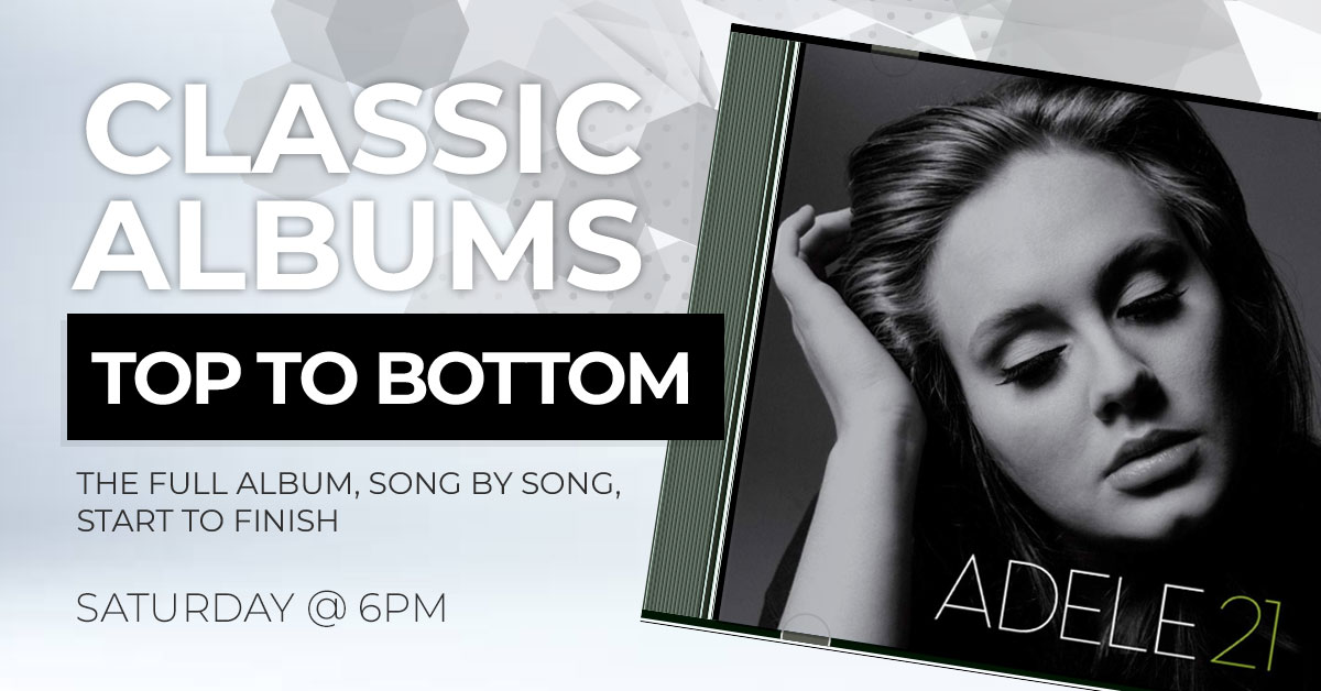 Join us for Classic Albums Top to Bottom featuring 21 from Adele, Saturday @ 6pm.... Read More